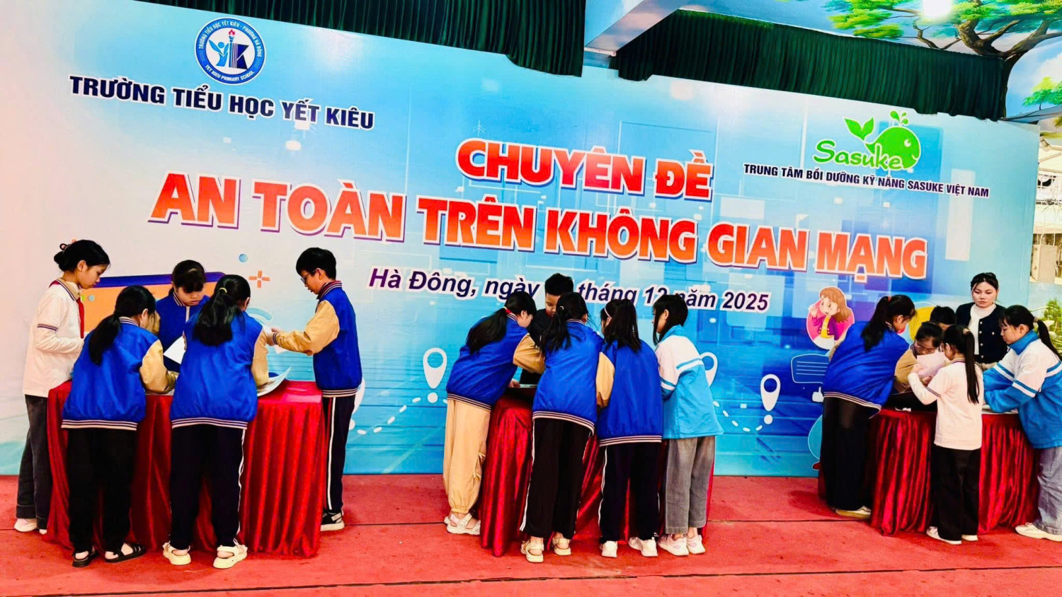 Nhà trường đã tổ chức chuyên đề “An toàn trên không gian mạng” với nhiều nội dung thiết thực, gần gũi, phù hợp với lứa tuổi học sinh Tiểu học. Thông qua các tình huống minh họa, câu hỏi tương tác và hướng dẫn cụ thể, các em đã được trang bị những kỹ năng cần thiết để tự bảo vệ mình khi học tập và vui chơi trực tuyến.